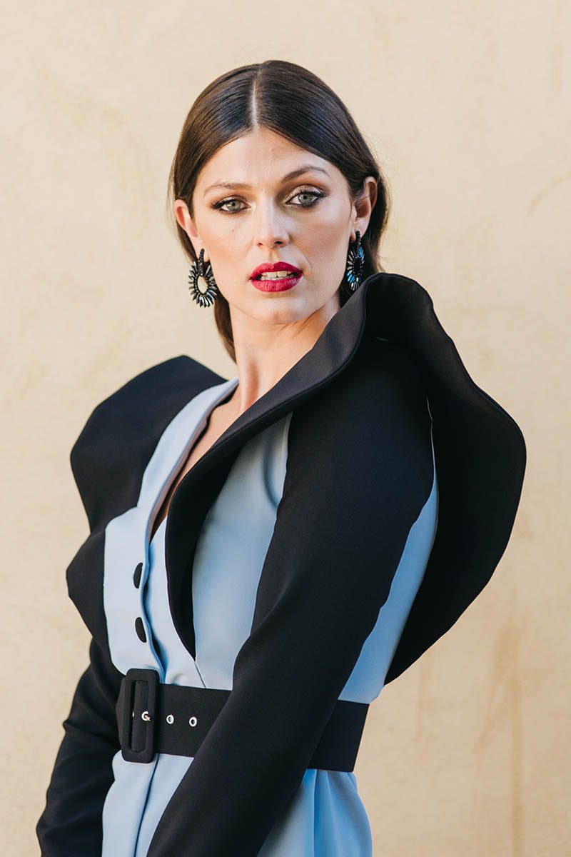 Conjunto de pantalón y chaqueta bicolor, de manga larga con detalle de volante y cinturón forrado. Elige la talla que suelas usar habitualmente en otras prendas entalladas no elásticas o deportivas. También puedes enviarnos tus medidas al WHATSAPP +34 695499062 y te ayudaremos a elegir tu talla ideal.