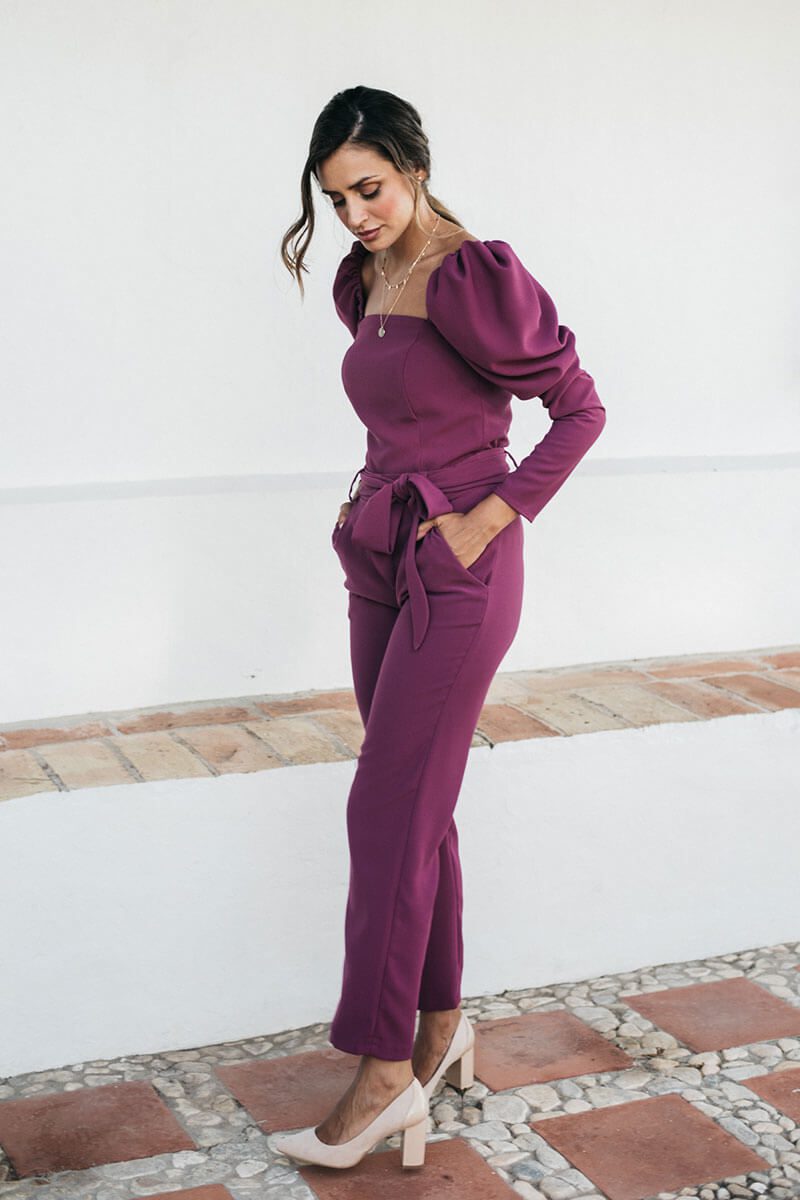 Pantalón al tobillo con bolsillos y detalle de lazada. Es semi entallado, con cinturilla reforzada, cierre con botón nacarado y cremallera al tono. En la parte de delante lleva unas pinzas y bolsillos laterales que le dan un aire ejecutivo muy actual. Lleva un patronaje muy cuidado y un corte que sienta muy bien a cualquier tipo de silueta. El toque femenino lo pone el cinturón extraíble en forma de lazada del mismo tejido del pantalón que puede abrocharse tanto en la parte central como en un lateral.