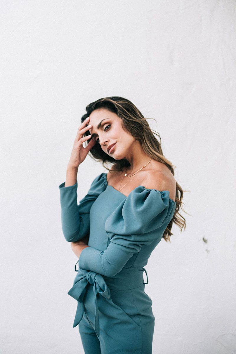 Top entallado con manga larga abullonada. De escote cuadrado se adapta muy bien al cuerpo y cierra con una cremallera invisible que lleva en la espalda. Sus preciosas mangas no dejan a nadie indiferente, abullonadas por la parte de arriba y entalladas por la parte de abajo.